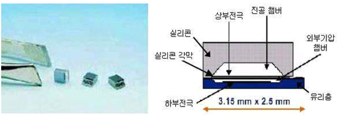 기압은 보통 라디오존데에 탑재된 실리콘 기압센서로 측정합니다. 실리콘 기압센서는 온도 의존성이 적으며, 교정 후에 안정성이 높고, 수송이나 취급할때 기계적 충격에 강합니다. 이 기압센서는 실리콘으로 형성된 진공 챔버와 유리층으로 형성된 외부 기압 챔버로 구성되어 있습니다. 2개의 챔버 사이에는 얇은 실리콘 각막이 있으며, 진공 챔버는 기준 챔버의 기능을 합니다. 외부 기압 챔버는 대기압의 영향을 받아 대기압이 변하면 실리콘 각막의 위치가 변하고, 이 변화를 상부 전극과 하부 전극 간의 정전용량 변화로 검출하여 기압을 측정합니다.