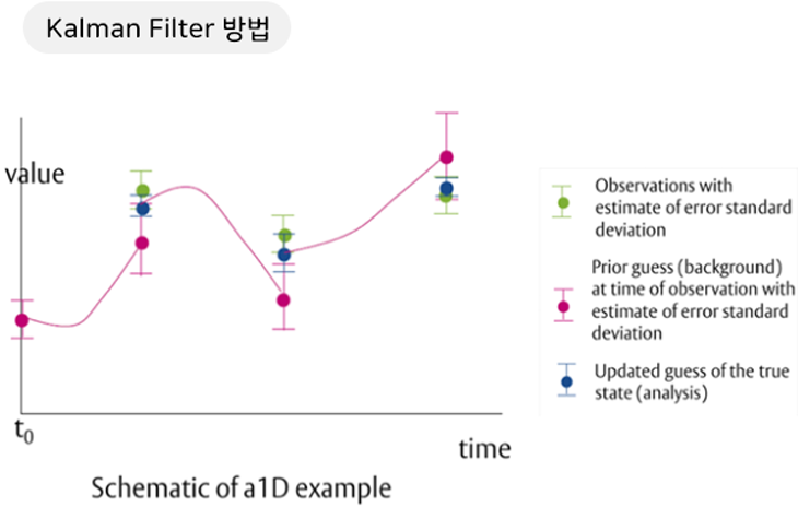 모델은 항상 오차를 가지게 마련이며, 이 오차는 관측자료를 이용해 보정해 주어야 합니다. 전처리과정에서 수집된 관측자료를 모델에 입력해 모델이 가지고 있는 예측오차를 보정하는 과정을 자료동화라고 합니다. 자료동화를 통해 전 시간의 모델 예측결과를 보정하여 다음시간 예측을 위한 고품질의 초기장을 생산할 수 있습니다.
